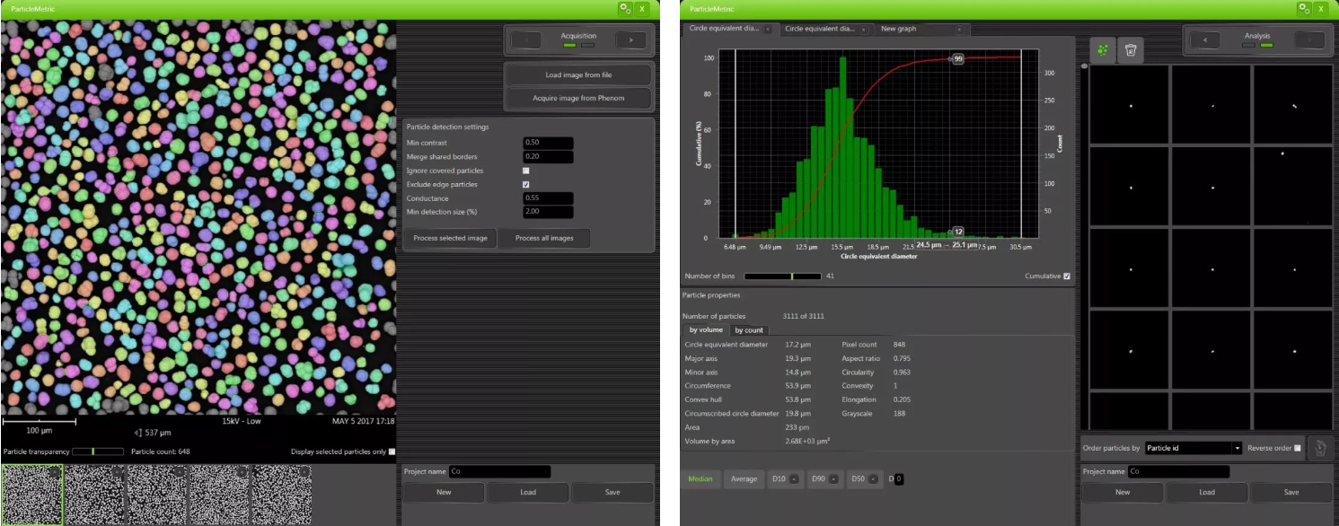 同時,也有利于用 飛納掃描電鏡顆粒統(tǒng)計軟件 以快速、簡便的方式實(shí)現(xiàn)顆粒的可視化分析。幫助用戶收集多種亞微米顆粒的形態(tài)和尺寸數(shù)據(jù)。