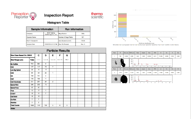 報告里包含的顆粒信息非常詳細,包括顆粒的尺寸大小,成分信息,并按照定義進行分類。還會給出可視化的圖表,不同尺寸/類別顆粒的占比,比如數量密度,夾雜物指數等。這個系統可以顯示出每一個夾雜物的形態和成分信息等,并且能一鍵回溯這個顆粒。結合三元相圖,還可以進行工藝的優化和改進。非常方便快捷。
