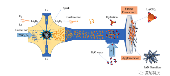 在線水合 + 火花燒蝕制備功能性,La(OH)3 負(fù)載的靜電紡絲纖維