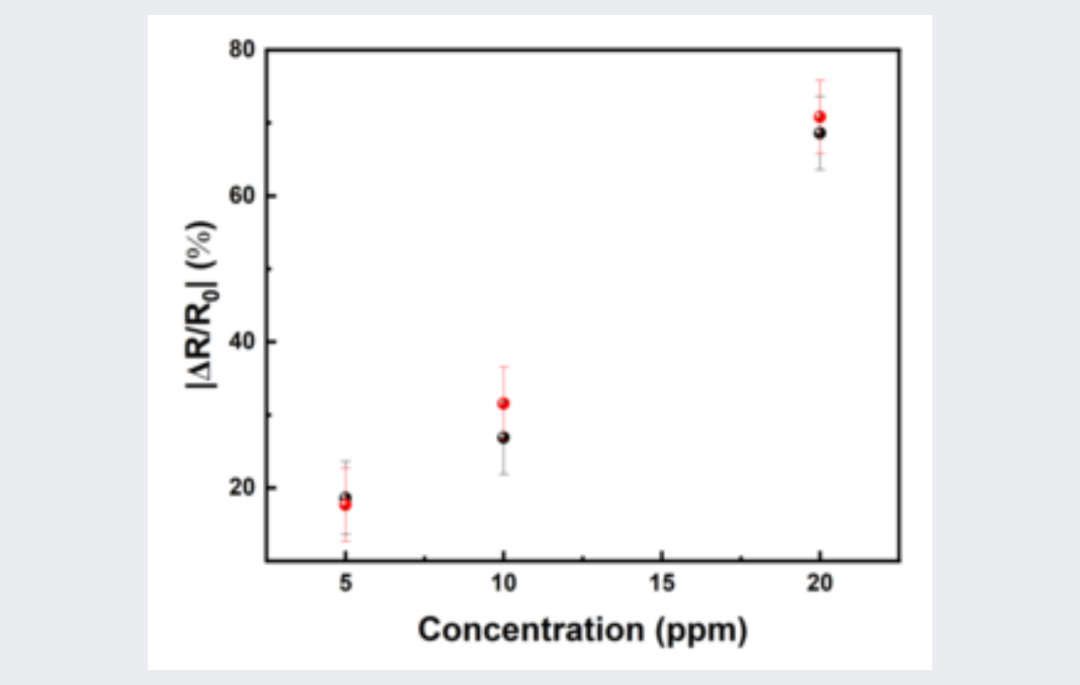 兩個 CR 的響應表明氣體傳感性能具有良好的重現性