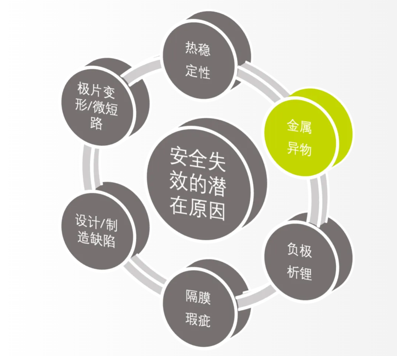 同時,影響電池安全的因素也有很多,包括:熱穩定性、金屬異物、負極析鋰、隔膜瑕疵、設計 / 制造缺陷、極片變形 / 微短路等。