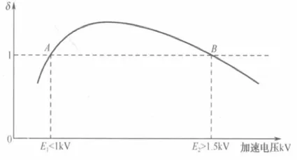 圖 1 絕緣體次級(jí)發(fā)射曲線
