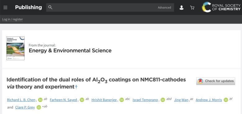 發表文章:Identification of the dual roles of Al2O3 coatings on NMC811-cathodes via theory and experiment