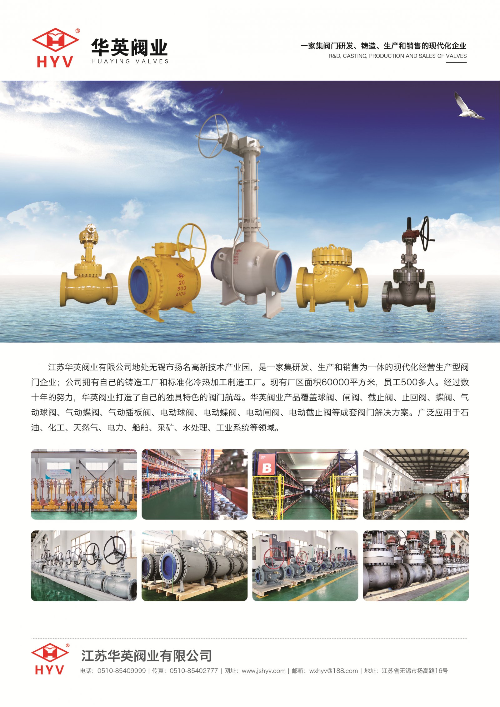 華英閥業總部位于無錫市揚名高新技術產業園,是一家集研發、生產和銷售為一體的現代化經營生產型閥門企業,擁有自己的鑄造工廠和標準化冷熱加工制造工廠。現有廠區面積60000平方米,員工500多人。華英閥業打造了自己的獨具特色的閥門航母,產品覆蓋球閥、閘閥、截止閥、止回閥、蝶閥、調節閥、氣動球閥、氣動蝶閥、氣動插板閥、電動球閥、電動蝶閥、電動閘閥、電動截止閥等。廣泛應用于石油、化工、天然氣、電力、船舶、采礦、水處理、工業系統等領域。