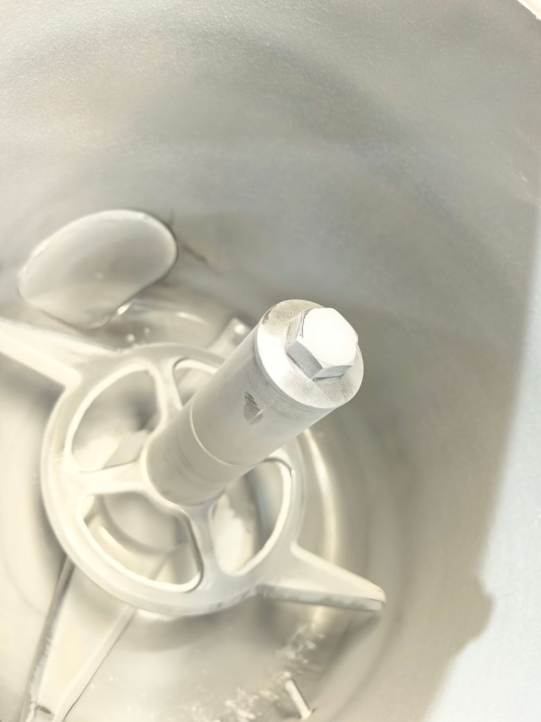 大金技術團隊將物料投入HM5-20高速混合機。設備采用磁性密封技術實現零泄漏,真空夾套系統精準控溫,有效保障物料穩定性。