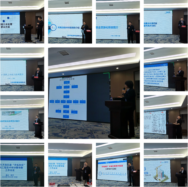 本次會議議程設有四個篇章,共16項議程。其中11項議程為環境工程技術交流培訓,內容包含市政及農村污水處理、水環境治理、污泥/油泥處理處置、城市靜脈產業園建設-生活固廢循環利用、工業廢水處理、礦業廢棄地污染/土壤與地下水生態修復、農村污水監測項目/水源保護、工業廢水/市政廢水/污染源運營服務、工程建設及安裝等;其余5項議程為業務交流培訓,內容包含公司業務規劃、業務銷售路徑及案例分析、業務部各項管理制度講解、技術支持事項講解、銷售常見問題討論/答疑及分享等。