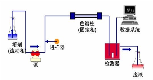 由于混合物中各組分在性質和結構上的差異,與固定相之間產生的作用力的大小、強弱不同,隨著流動相的移動,混合物在兩相間經過反復多次的分配平衡,使得各組分被固定相保留的時間不同,從而按一定次序由固定相中先后流出,與適當的柱后檢測方法結合,實現混合物中各組分的分離與檢測。