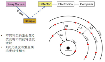 X射線熒光光譜技術(shù)(XRF)的原理見圖3所示,可以直接檢測固體或液體樣品中ppm量級的元素成分。采用富集后再檢測的辦法,使得XRF技術(shù)對空氣顆粒物中的重金屬成分的檢測限優(yōu)于0.001ug/m3。而常規(guī)實(shí)驗(yàn)室的檢測技術(shù),由于預(yù)處理消解過程中需要將微克量級的樣品溶解到幾十克的液體中,而使得濃度被稀釋百萬倍,從而多數(shù)儀器(譬如ICP-AES、或原子吸收光譜儀)無法檢出元素含量低于10ug/m3量級的空氣顆粒物樣品。