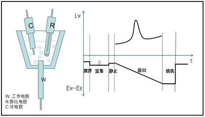 在一定的電位下,使待測金屬離子部分地還原成金屬并溶入微電極或析出于電極的表面,然后向電極施加反向電壓,使微電極上的金屬氧化而產(chǎn)生氧化電流,根據(jù)氧化過程的電流一電壓曲線進(jìn)行分析的伏安法。 陽極溶出伏安法以其極低的成本與高靈敏度的特點(diǎn)、目前在歐美正取代傳統(tǒng)的原子吸收方法大量應(yīng)用于環(huán)境應(yīng)急監(jiān)測、自來水檢測、電鍍和表面處理行業(yè)廢水檢測、食品、制藥、醫(yī)院廢水監(jiān)測等方面。