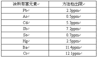 按國標(biāo)中針對(duì)涂料中有害元素含量應(yīng)小于或等于下表中相應(yīng)元素的最大限量要求。