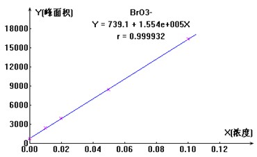 由實驗數據可知,離子色譜法測試水中BrO3-陰離子準確度高,檢出濃度低,方法簡單快捷,完全滿足環保行業對于水中BrO3-離子檢測的需求。