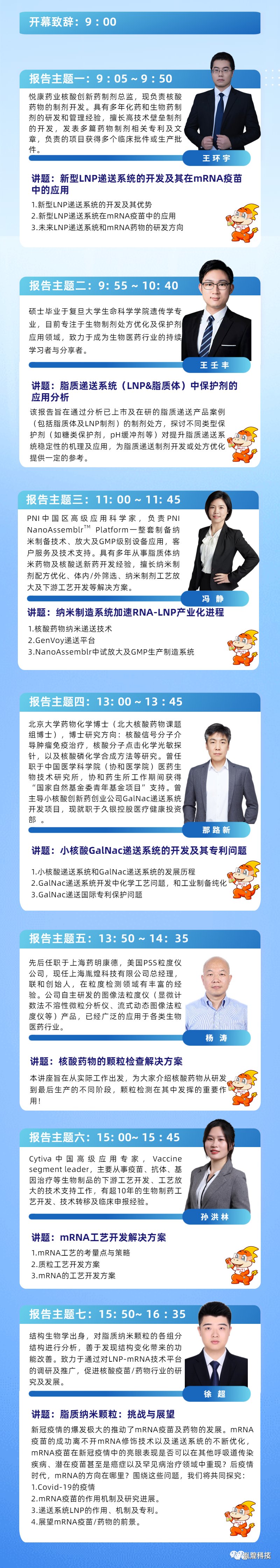 本屆核酸疫苗及藥物產業研討會,聚焦核酸疫苗及藥物的技術發展,大會將匯集核酸藥物產業、生物技術、核酸疫苗技術及醫藥行業的專家學者,共同探討核酸疫苗及藥物產業的發展趨勢,以及核酸疫苗與藥物的研發、生產、分析檢測、創新及應用等多領域話題。大會將邀請行業內優秀的專家講者,與與會嘉賓共同探討核酸疫苗及藥物產業的發展方向,以及如何推動業界融合發展、搭建科技創新平臺、建設質量可持續發展生態系統等問題。