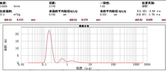 先研磨:出料粒徑d50=0.179um,D90=0.699um