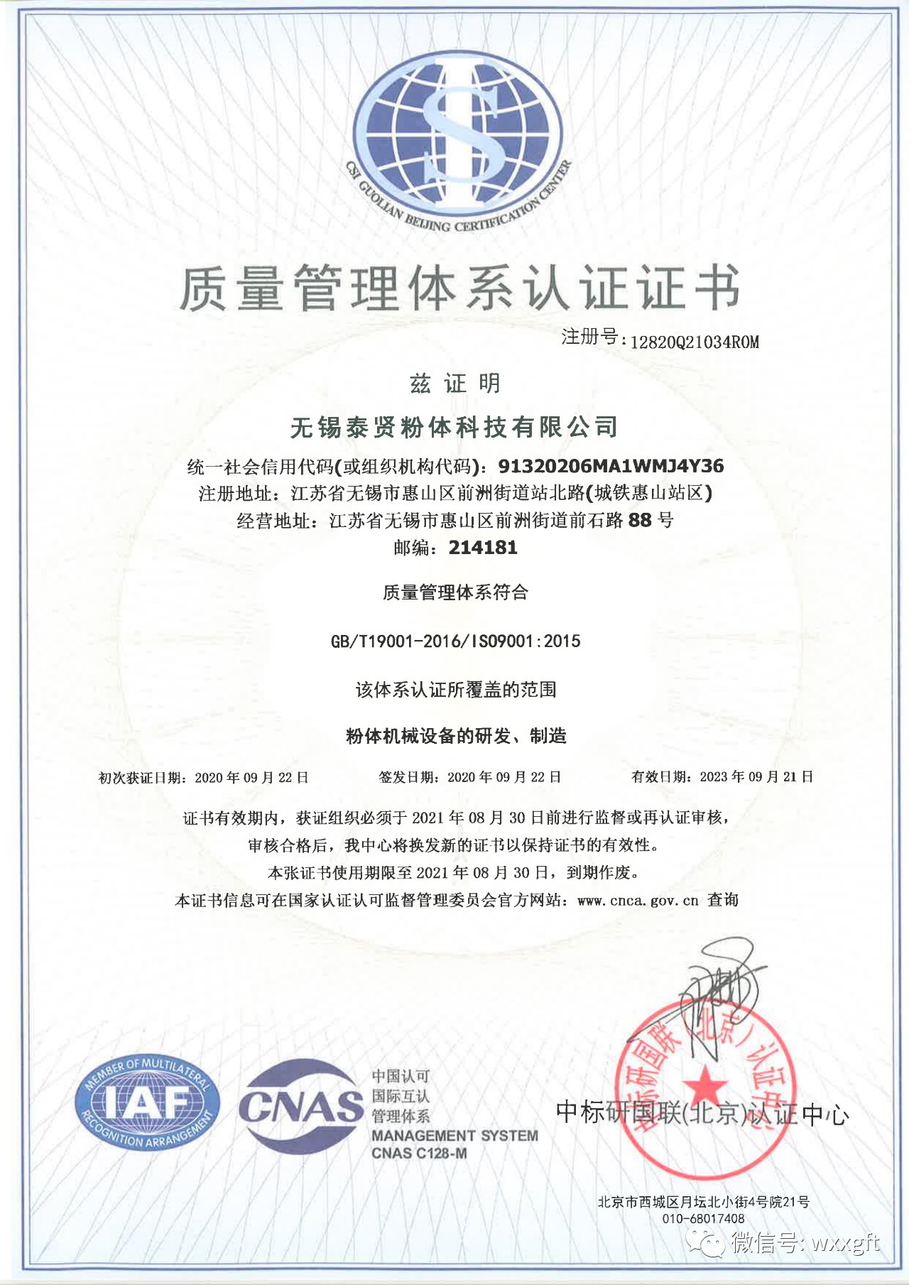 無錫泰賢粉體科技有限公司(原無錫新光)坐落于風景秀麗的太湖之濱,水陸交通便捷。經過三十年的市場洗禮,成為國內專業的超細納米研磨.混合.包覆裝備的生產及研發基地,在2007年獲得了“江蘇省高新技術企業”“江蘇省科技型小企業”“無錫市功能粉體技術研發中心”等榮譽。公司占地15000平方米,是專業生產微納米分散研磨設備、納米粉體改性設備、干法混合融合、金屬粉片狀化、彌散合金專用設備、電池正負極材料設備等專業生產廠家。多年來,致力于粉體粉碎、納米混合、融合改性、干燥等流程的研究。與復旦大學材料學院,天津十八所,中南大學電化學系,中科院過程所等國內外知名學府,科研機構達成廣泛的技術合作,共同研制,開發亞微米,納米顆粒的研磨,分散,以及顆粒表面設計等項目。本公司產品主要應用于電子陶瓷、結構陶瓷、磁性材料、鈷酸鋰、催化劑、熒光粉、納米材料、MLCC、熱敏電阻(PTC、NTC)等產品的生產領域等行業,服務了國內將近80%電子元氣件生產廠家。本公司擁有先進的粉體加工實驗室,配備馬爾文MS2000激光粒度分析儀(20nm-200μm)、粘度測量計,振實密度測量儀等先進測量設備。公司實驗展示車間占地1800余平米,可對客戶來樣進行粉體干法和濕法的研磨、分散、攪拌、混合、包覆、改性、顆粒表面設計等各種售前工藝試驗。激情、誠信、創新、專注"是我司對待產品和客戶始終如一的原則。三十余年的技術積累與以人為本的創新機制,造就了技術工藝實力強勁的核心團隊,"把困難交給我們,把滿意交給你們",熱誠與新老客戶攜手共進、共創輝煌!