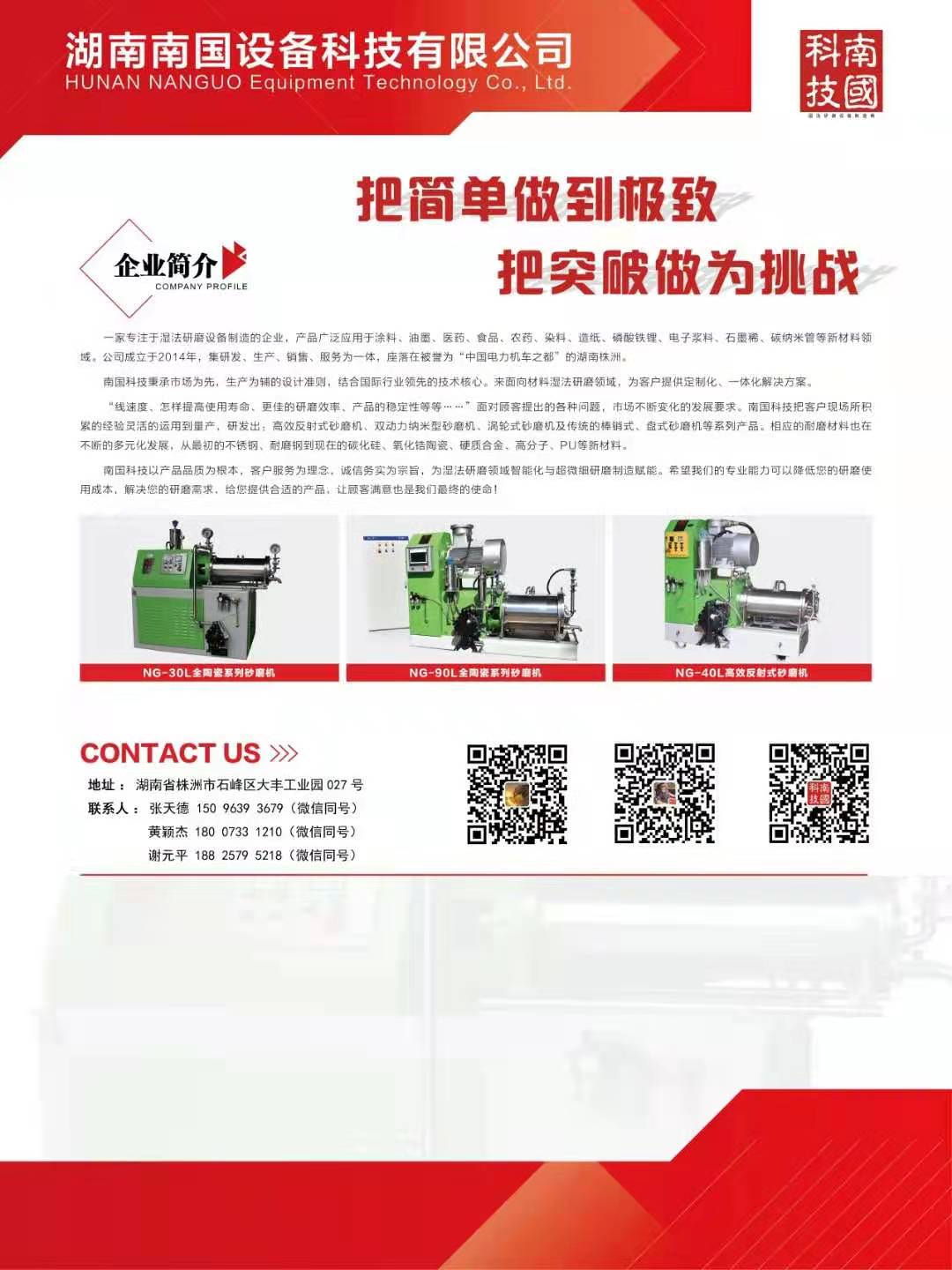 湖南南國設備科技有限公司將攜NG系列高效反射式砂磨機參加此次CHINACOAT。