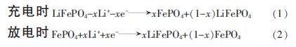 鋰電池充電時(shí),Li+從正極脫出,經(jīng)過(guò)電解液、隔膜,遷移到負(fù)極,此時(shí)負(fù)極處于富鋰狀態(tài)。鋰離子從正極脫出后,正極的LiFePO4轉(zhuǎn)化為磷酸鐵。放電過(guò)程正好相反[1],其充放電化學(xué)反應(yīng)式可表示成式(1)和式(2):