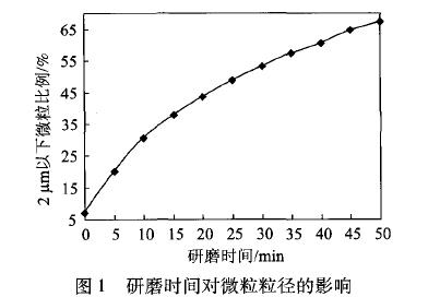 2.1.1 研磨時(shí)間對(duì)微粒粒徑的影響