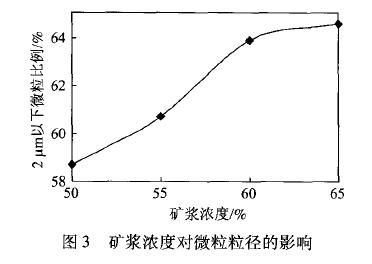 2.1.3 礦漿濃度對(duì)微粒粒徑的影響