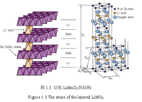 以目前常用的 Li Co O2為代表的 Li MO2(M=V、Cr、Co 或 Ni)層狀化合物正極材料。其層狀化合物晶體結構中,Li+層和