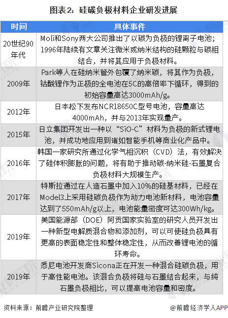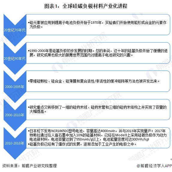 圖表1:全球硅碳負(fù)極材料產(chǎn)業(yè)化進(jìn)程