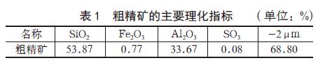 試驗地點在中國高嶺土有限公司中試車間和剝片車間,試驗原料為茂名某公司的φ250mm 水力旋流器溢流粗精礦,粗精礦的主要理化指標見表1。