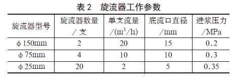 2.3 水力旋流器工作參數水力旋流器作為一種高效的細微粒礦物分級、脫泥、濃縮設備,廣泛用于有色金屬選礦、陶瓷、非金屬礦選礦等領域,它具有結構簡單,產能大,占地小,效率高,運行成本低的優點[6]。本次試驗采用的旋流器工作參數見表2。