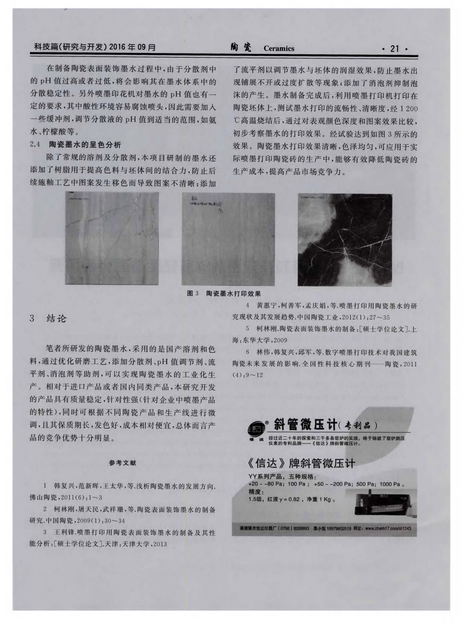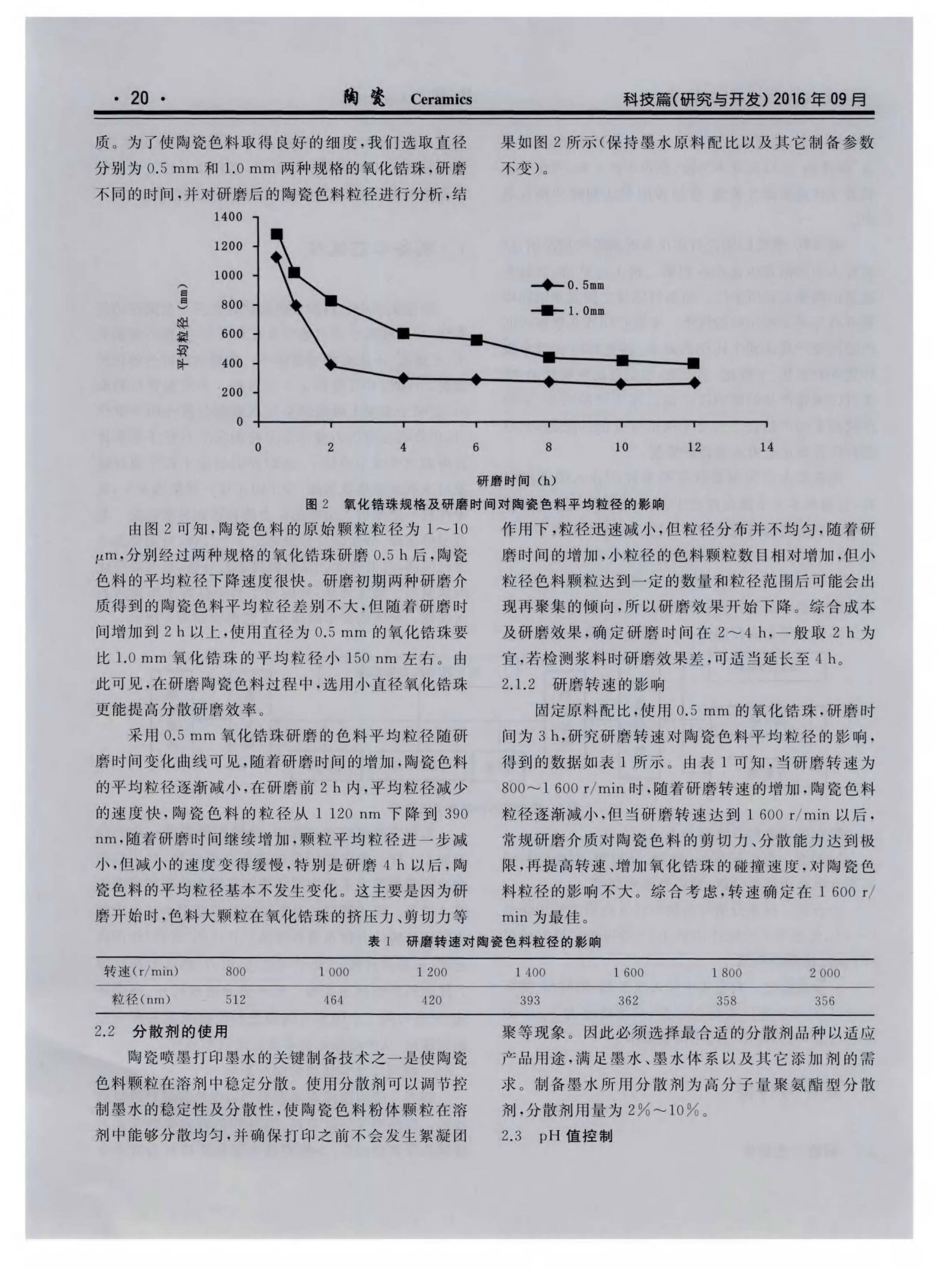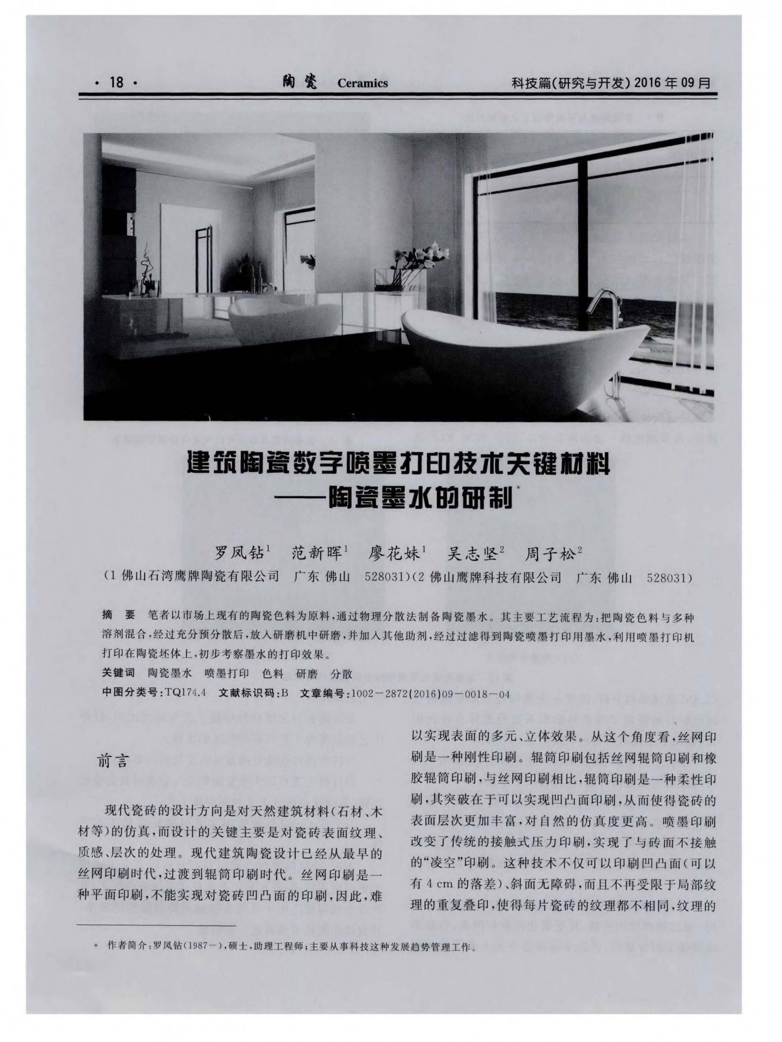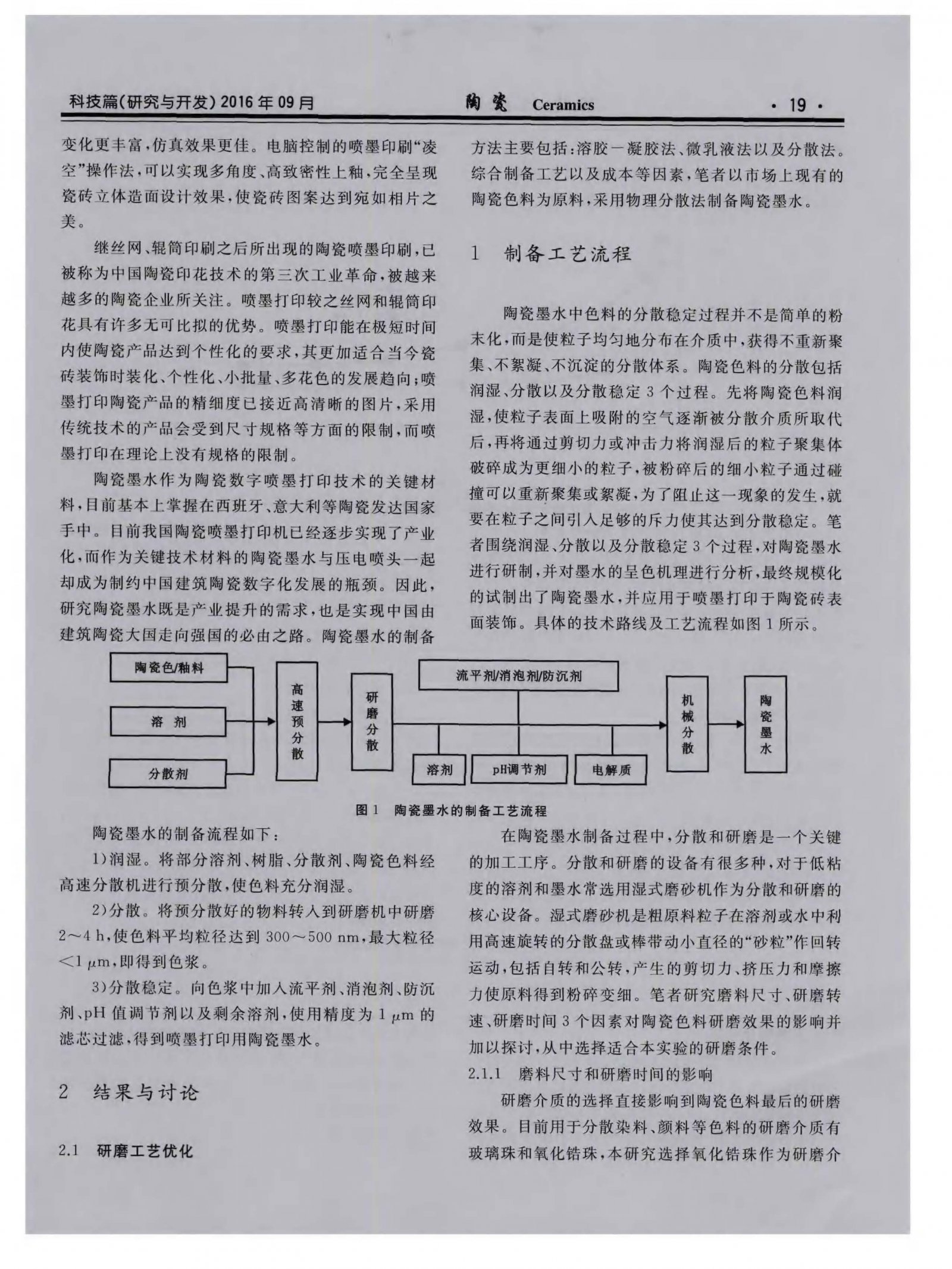 建筑陶瓷數字噴墨打印技術關鍵材料——陶瓷墨水的研制