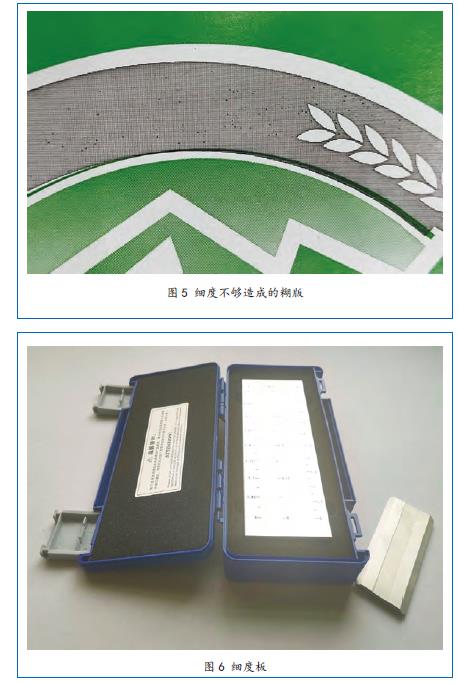 5 ~ 15μm,可根據印刷機及印品的要求選用不同細度的色漿。通常來說,在進行網線較高的印刷時,水墨細度要求要更高一點。水墨細度的測試方法見國家標準GB/T 13217.3—2008 《液體油墨細度檢驗方法》。見圖5 和圖6。