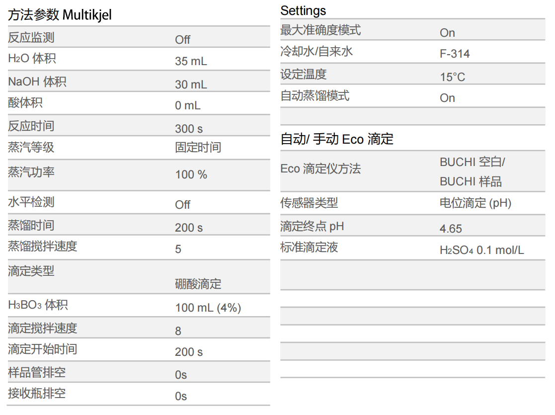 在樣品測定前,先進行 5 次空白測定,再進行 5 次標準品蒸餾。所有蒸餾參數列于表 1。