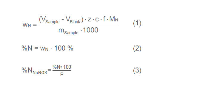 %NNaNO3:為 NaNO3 純度校正的氮的重量百分比[%]