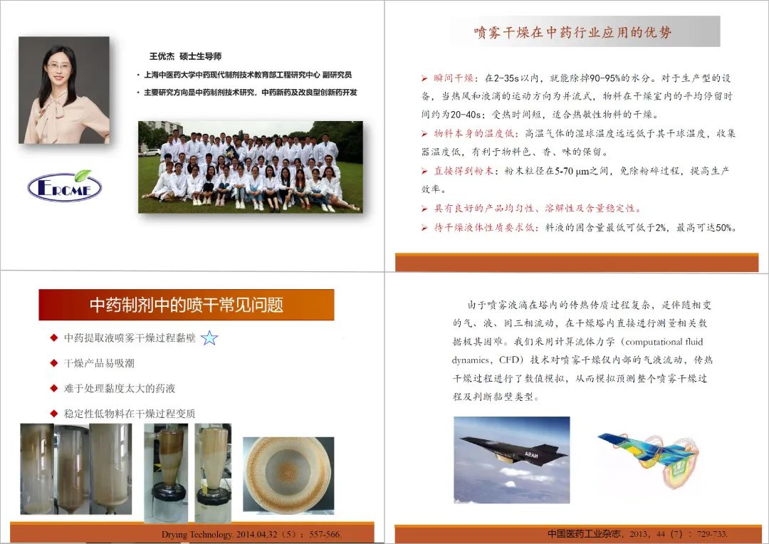 接著,上海中醫藥大學副研究員王優杰從中藥新藥及改良型創新藥開發、中藥掩味及安慰劑的研發、中藥智能生產制造、中藥制劑特點以及噴霧干燥在中藥行業應用的優勢、應用、影響等方面講述了噴霧干燥技術在中藥開發中的研究。
