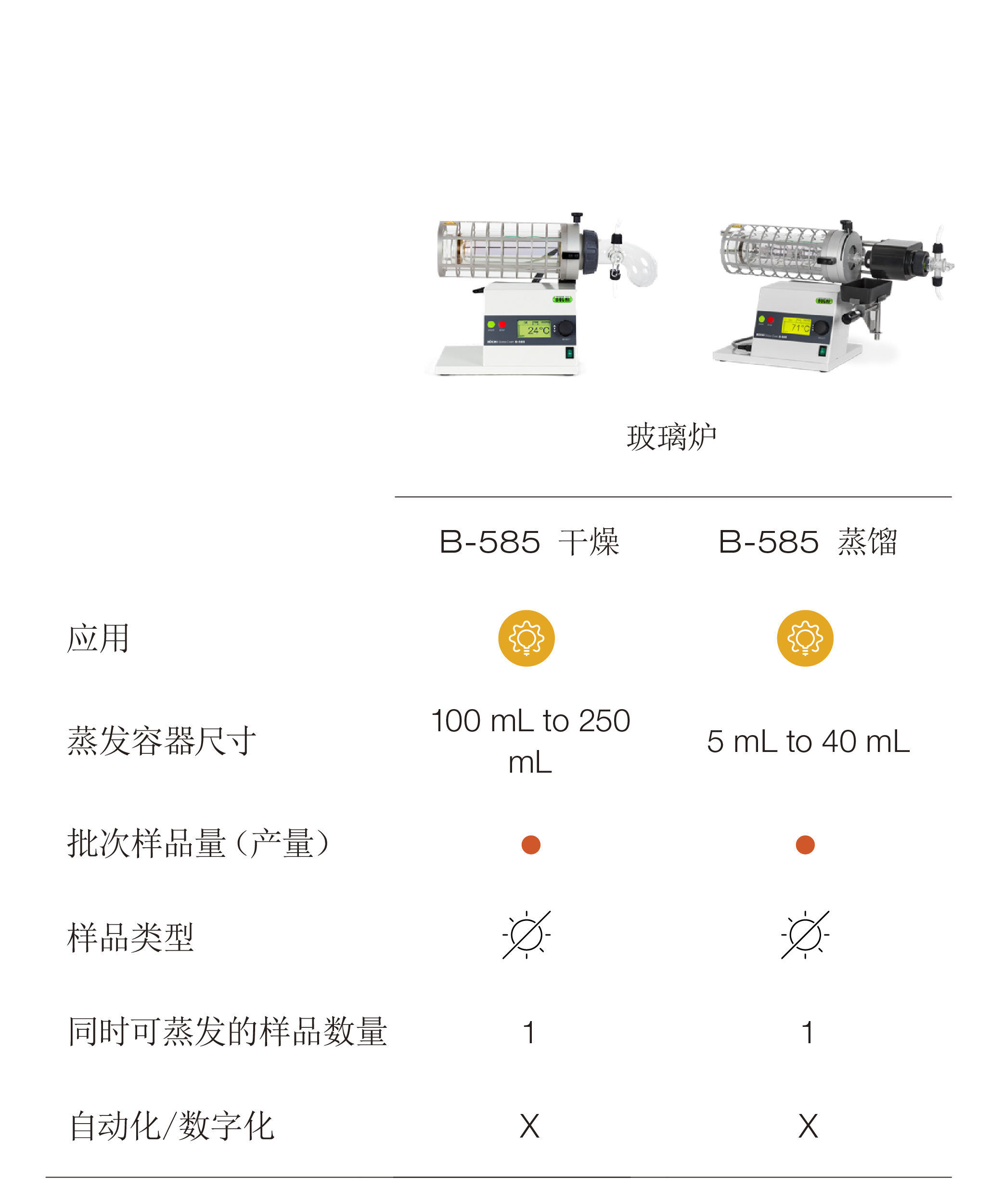 玻璃爐作為蒸發(fā)系統(tǒng)家族中最“小個子”的成員,樣品處理量只有 5 mL 到 250m L,但同時也是整個家族中最“細心”的。得益于其小巧的體積和特殊的蒸發(fā)器皿,在操作和轉(zhuǎn)移樣品時,可以有效避免樣品的損失。我們甚至可以將整個玻璃爐放入手套箱或者對內(nèi)通入保護氣體來避免樣品的二次受潮和氧化。B-585 還有一個透明的加熱管,溫度可以達到 300℃,可以一邊調(diào)整溫度一邊觀察樣品的情況,因此非常適合材料、石油和化工等領(lǐng)域的應(yīng)用場景。