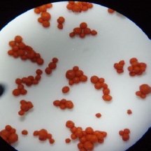 本實(shí)驗(yàn)成功使用氣流振動(dòng)噴嘴制得球型葉黃素微粒,如下圖(a)所示。圖中葉黃素粉末嵌入在海藻酸鈣微球內(nèi)部,微球直徑尺寸在 300μm 到 600μm 之間。