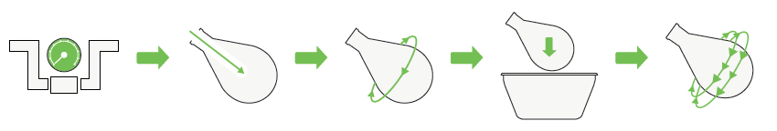 通過進(jìn)料閥吸取樣品至蒸發(fā)瓶尺寸的 1/3 至 ? 容積