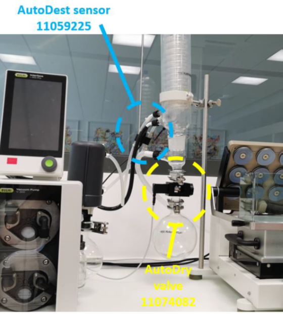 AutoDest 和 AutoDry 的組合可實現將溶劑蒸干的全自動化過程。因此不需要設置方法,只需要設置 SyncorePlus 底座和加熱蓋的旋轉、溫度和干燥時間即可。利用平行蒸發儀對檢測過程中的氯苯溶劑蒸餾進行批量化處理,可大大減少檢測中所花費的人力及時間。