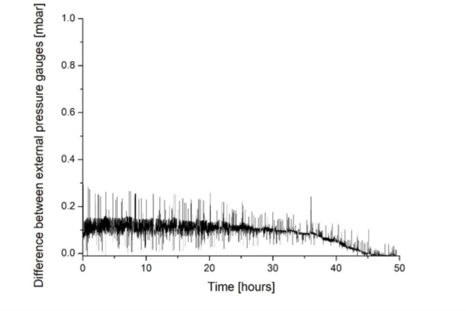在完成 Lyovapor? L-300 的調(diào)節(jié)步驟后,進(jìn)行目標(biāo)壓力 0.200 mbar 的真空測試。不同的測量技術(shù)決定了外部壓力表之間的偏移值