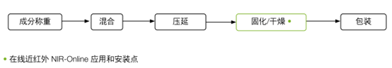 NIR-Online 在線分析儀直接安裝在地板壓延線上方,用于測量殘留水分或聚合物含量。如下圖所示: