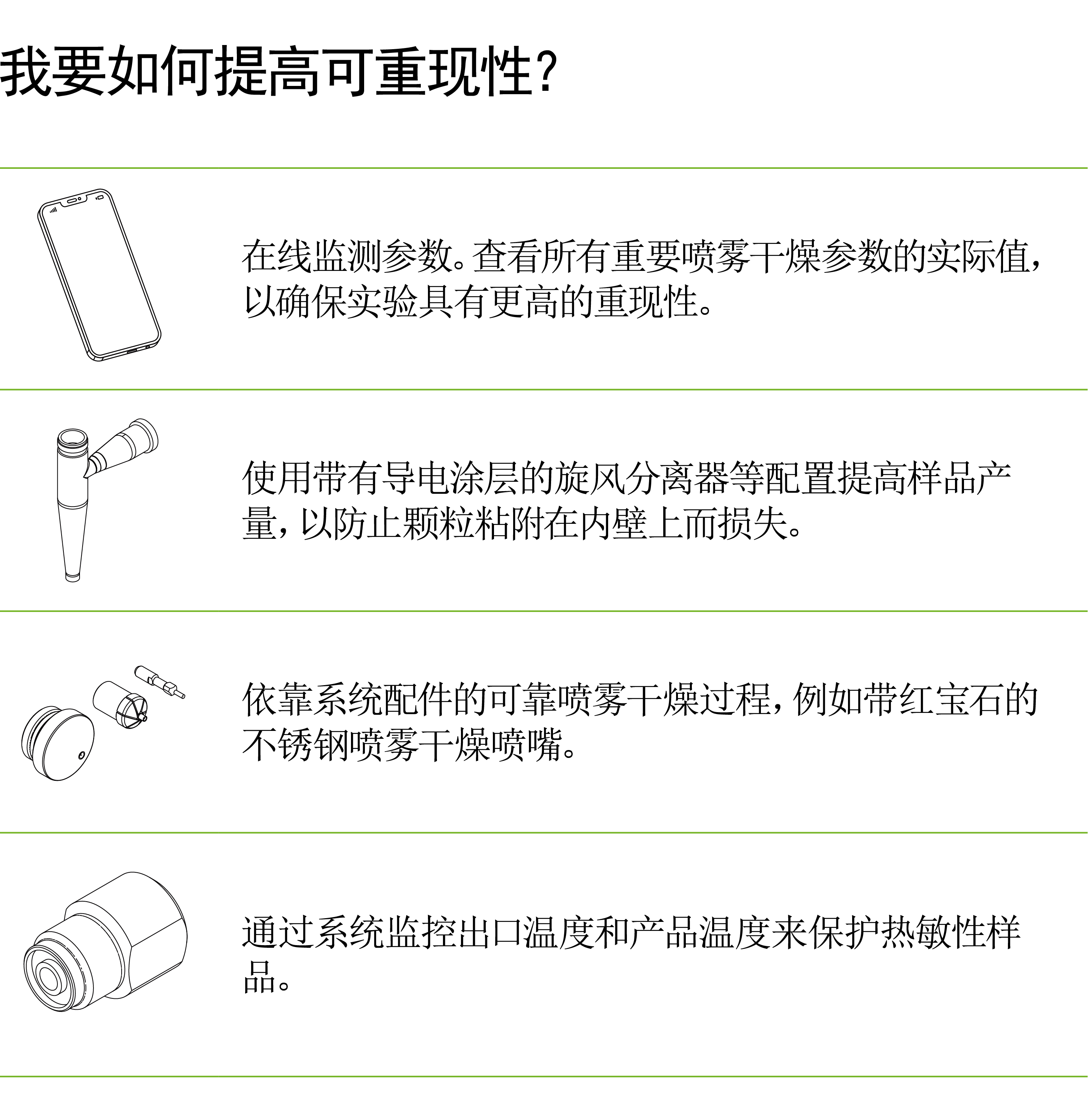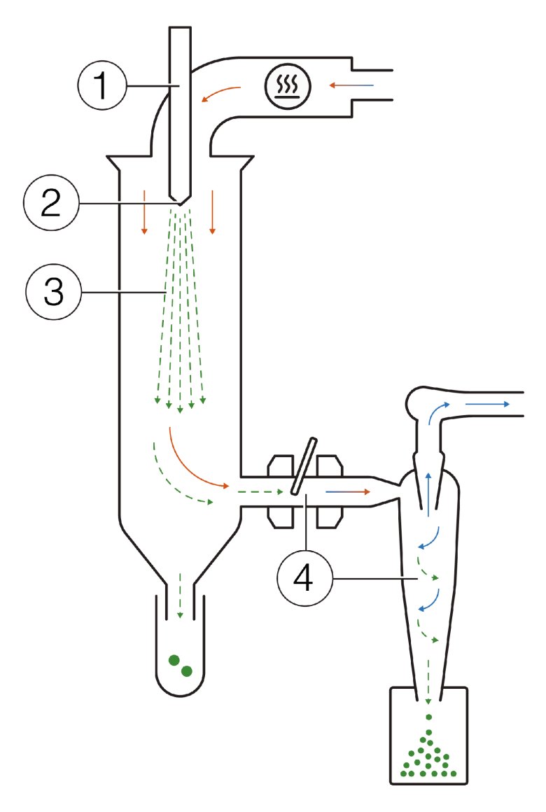 霧化:將液體進料轉化為小液滴。這步處理會影響粉體顆粒的性質和粒度大小。