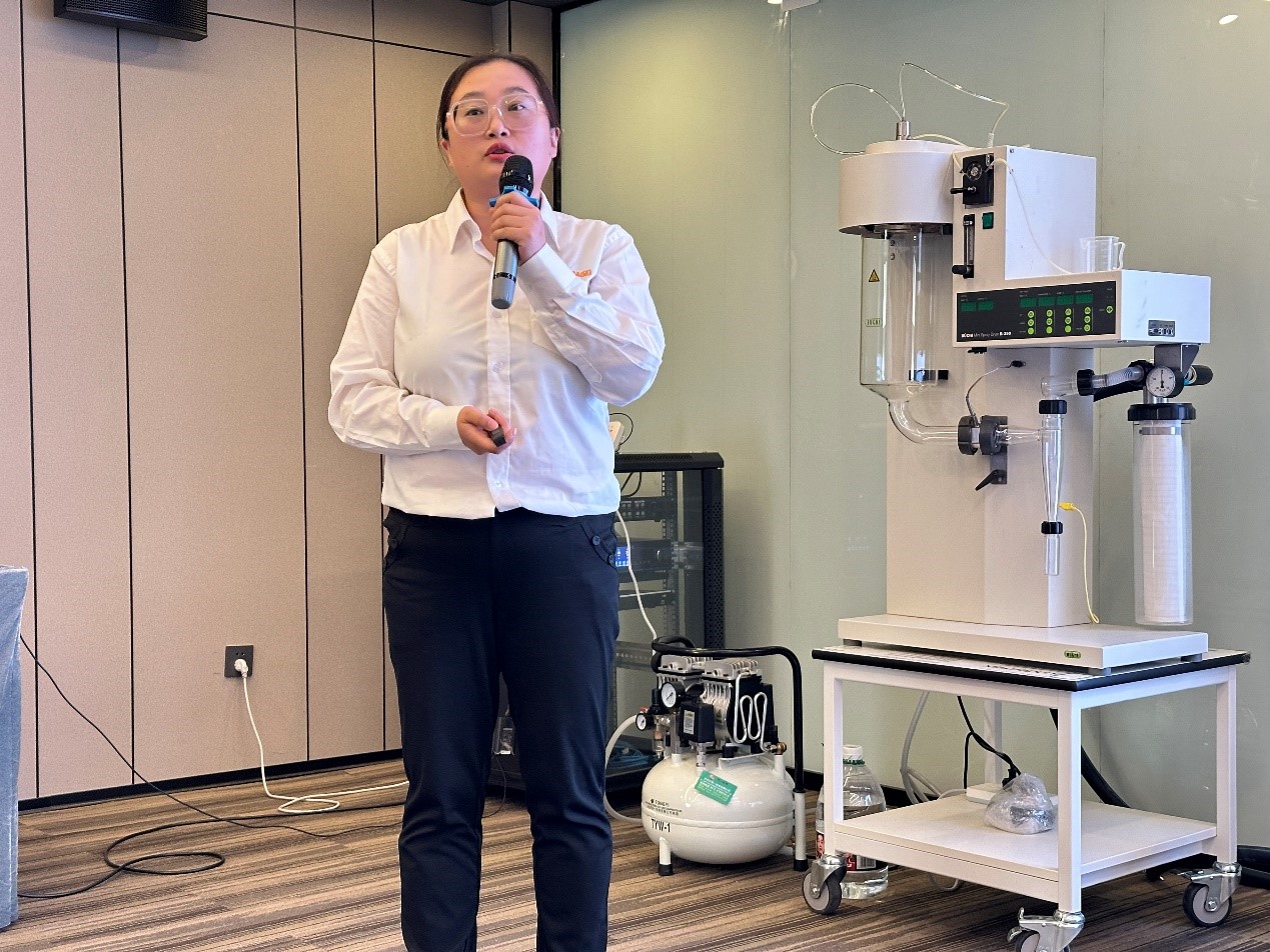 交流會(huì)在瑞士步琦華東區(qū)銷售經(jīng)理?xiàng)铎o先生以及英國(guó)雷尼紹業(yè)務(wù)拓展經(jīng)理李曉云女生的歡迎致辭拉開序幕。上午,瑞士步琦業(yè)務(wù)發(fā)展部經(jīng)理祝雙來介紹了“步琦噴霧干燥產(chǎn)品解決方案及技術(shù)原理”;瑞士步琦產(chǎn)品經(jīng)理?xiàng)畹t晨分享了“步琦噴霧干燥技術(shù)在藥物領(lǐng)域?qū)嵗保挥?guó)雷尼紹應(yīng)用專家于鷹暢分享了“雷尼紹顯微共焦拉曼技術(shù)在藥物逆向工程中的案例”。下午專家們針對(duì)“噴霧干燥產(chǎn)品操作培訓(xùn)及常見問題”和“雷尼紹產(chǎn)品信息分享及常見問題”做了現(xiàn)場(chǎng)答疑。此次會(huì)議吸引了38位業(yè)內(nèi)老師專家們蒞臨。