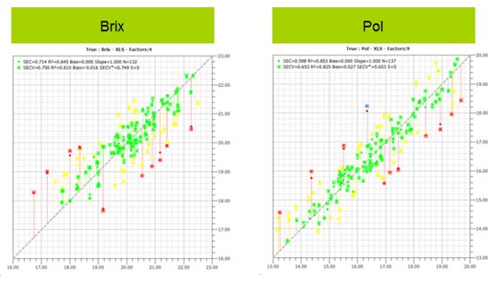 在線近紅外系統(tǒng)用于日常檢測蔗絲的質(zhì)量,實時在線檢測蔗絲的準確度高,可以用來代替常規(guī)化驗分析的方法,取消初汁壓汁采樣分析,用近紅外數(shù)據(jù)代替。