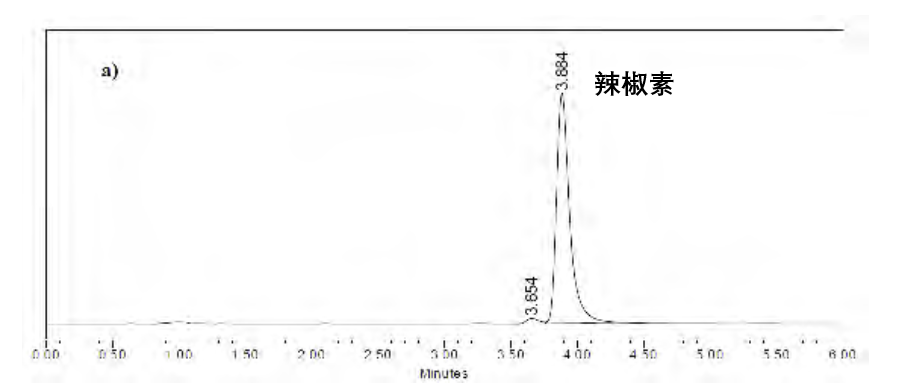 根據辣椒素標樣,我們可以確定辣椒素的出峰位置為 3.884 min,通過這一參數我們可以確認之后每一步分離的餾分位置。