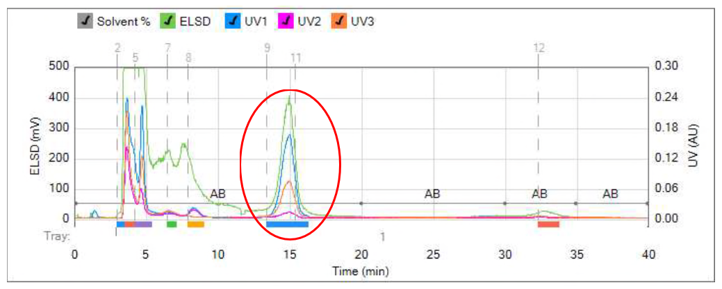 將之前獲取的 9-11 管餾分濃縮后,在 C-850 的高壓模式下進行分離。