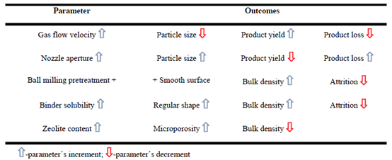 在這項工作中,我們探索了一種用于催化劑配方的噴霧干燥技術。整噴霧干燥工藝參數,得到粒徑在 30 ~ 100μm 之間的顆粒。結果表明,通過改變氣體流量、噴嘴孔徑、球磨漿前處理和漿料組分配比,可以制備出具有不同粒徑和形態特征的復合顆粒。在所有不同的研究變量中,漿料配方中最關鍵的方面是可噴涂漿料的總固體含量,這受到催化劑成分(特別是粘合劑和粘土)的強烈影響:漿料稀釋率低于 30wt.% 會導致松散的、表面缺陷的復合材料,其耐磨性較差,而更高的負載,在最佳噴涂條件下,提供更好的形狀顆粒。