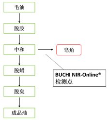 將 BUCHI NIR-Online? 安裝在油皂分離之后,用在線近紅外光譜儀簡單快速監控和追蹤記錄堿中和的過程以及皂腳中殘油量,嚴格控制生產工藝。