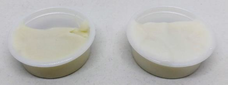 ▲ 圖7. 對未脫色(左)和脫色(右)3%配方的短毛櫟提取物進行優化活性炭脫色的結果