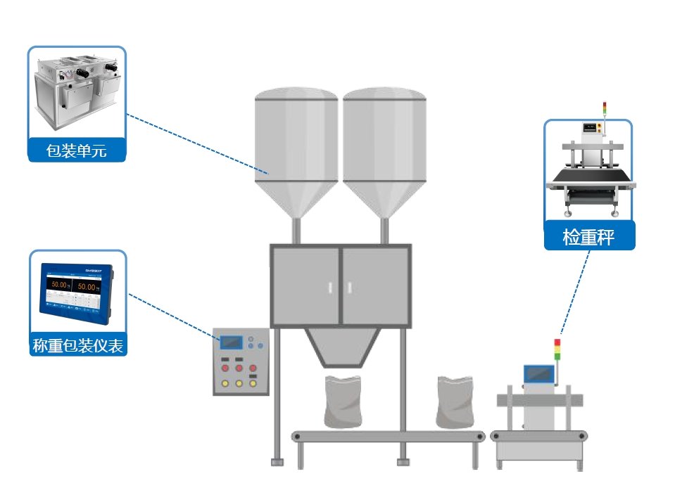 杰曼稱重包裝與復檢聯動,實現快速、精確的定量包裝,大幅提高生產效率,減少人工操作,實現重量偏差報警。 ● 在高速包裝環節中,杰曼稱重包裝類產品能進行自適應稱重,確保包裝重量精度及一致性,保證每包飼料重量達標,符合客戶要求,減少質量投訴; ● 在復檢環節,杰曼檢重秤能確保包裝重量準確,同時能夠實現實時反饋重量數據給上級包裝秤,避免少裝或多裝現象。 稱重包裝儀表
