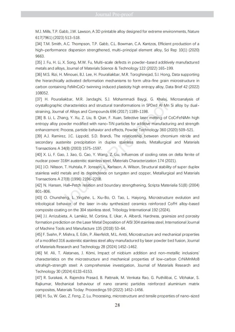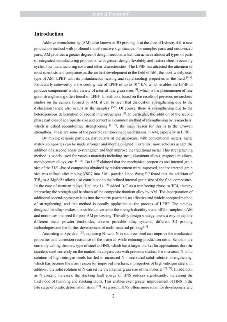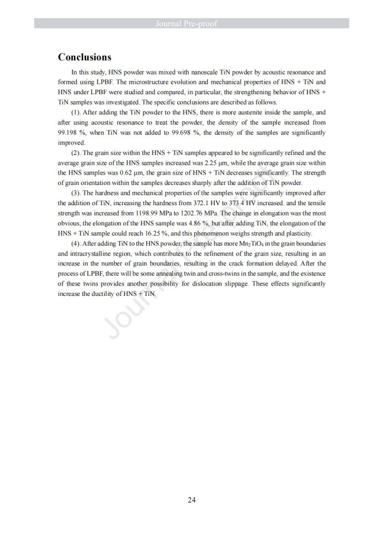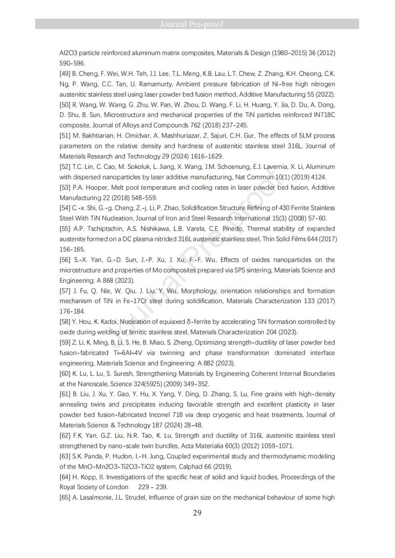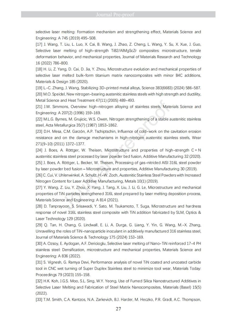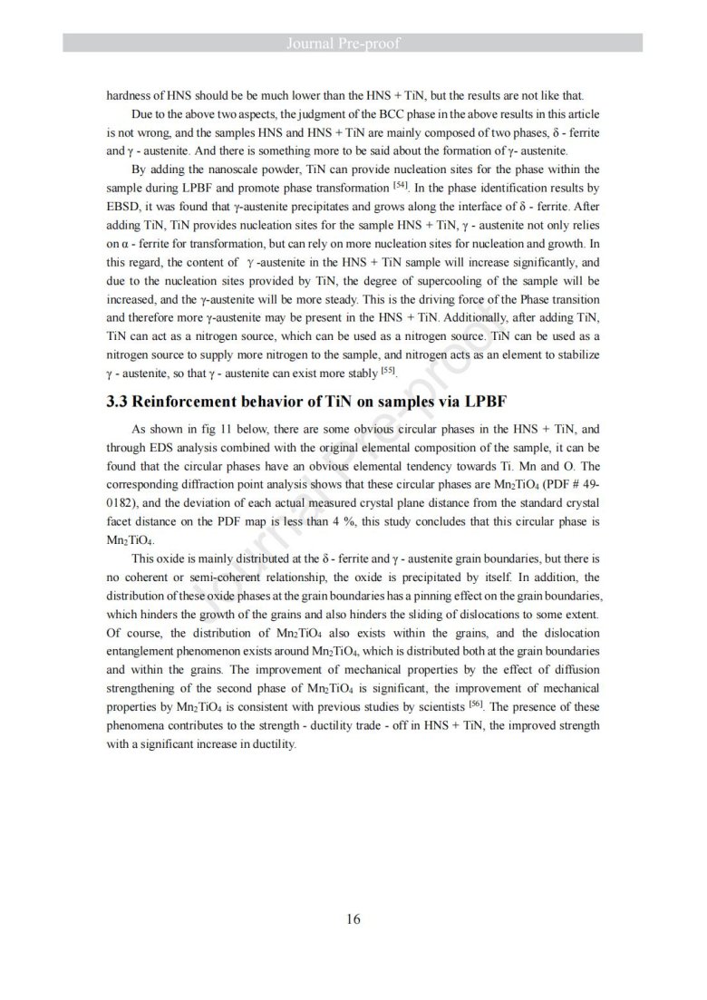 納米級陶瓷顆粒包覆金屬粉末改性(Laser powder bed fusion of TiN - high nitrogen steel composite: microstructure and strengthening mechanism)