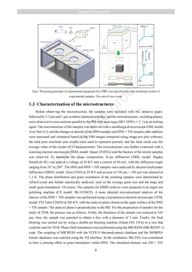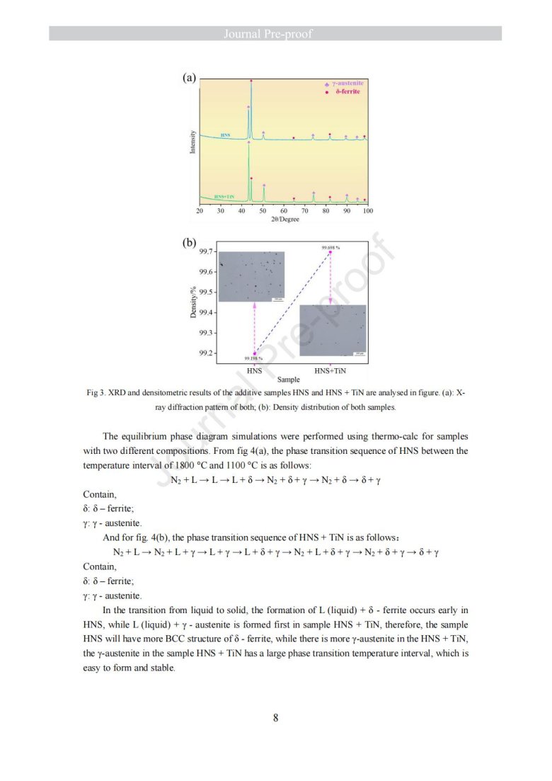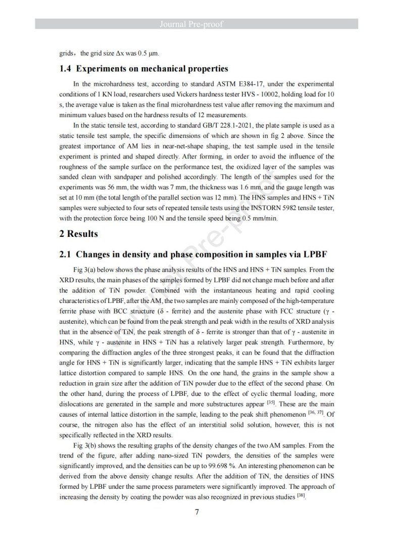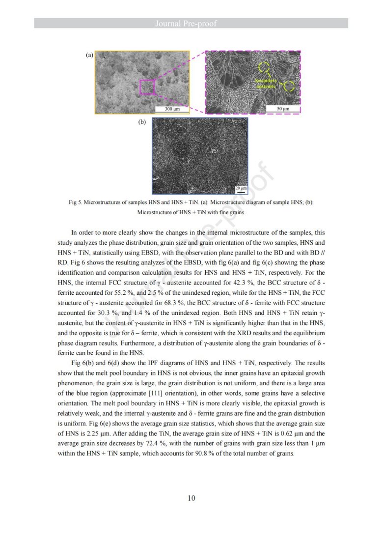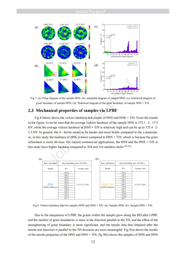 納米級陶瓷顆粒包覆金屬粉末改性(Laser powder bed fusion of TiN - high nitrogen steel composite: microstructure and strengthening mechanism)