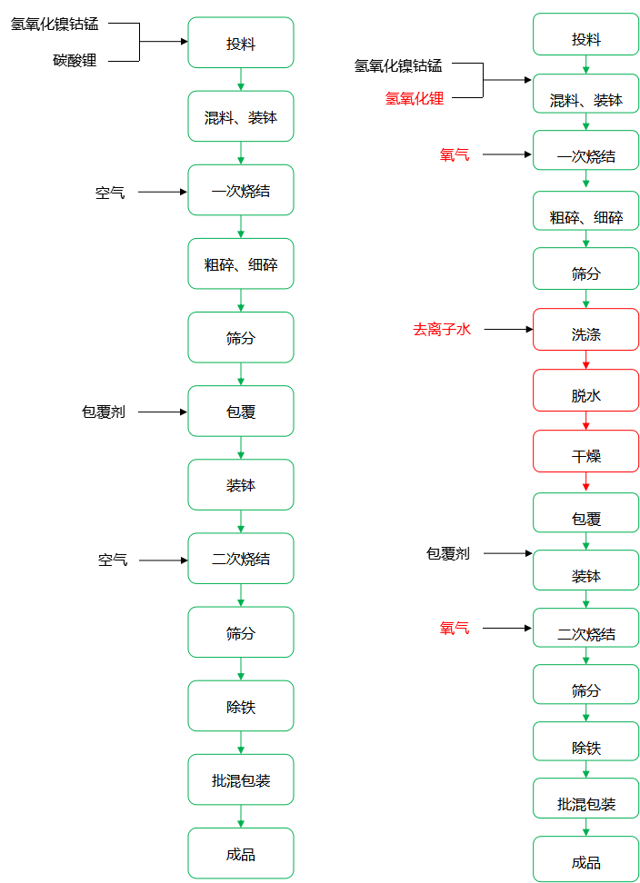 普通三元正極材料生產工藝vs高鎳三元正極材料生產工藝