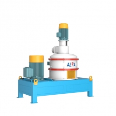 (1)簡介:物料經粗破后,由進料裝置輸送至主機粉碎腔,物料與高速回轉器件及顆粒之間互相沖擊、碰撞、磨擦、剪切、擠壓而實現超細粉碎。粉碎后的物料被上升的氣流輸送至葉輪分級區,在分級輪離心力和風機抽力的作用下,實現粗細粉的分離,合格的細粉由旋風收集器收集,不合格的粉料由內分級機返回粉碎腔再次粉磨,凈化的